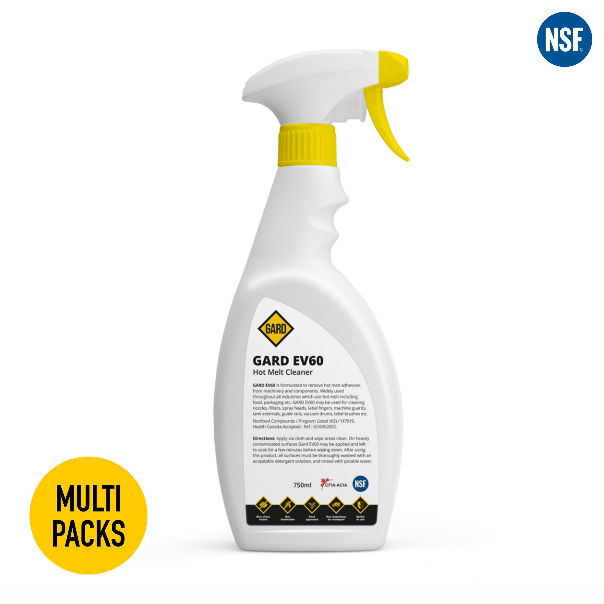 Gard EV60 can be used to clean down label stations, guide rails, applicator wheels, label carriages, label brushes, belts, tank externals and machine guards without causing any damage to plastic i.e. crazing/clouding.