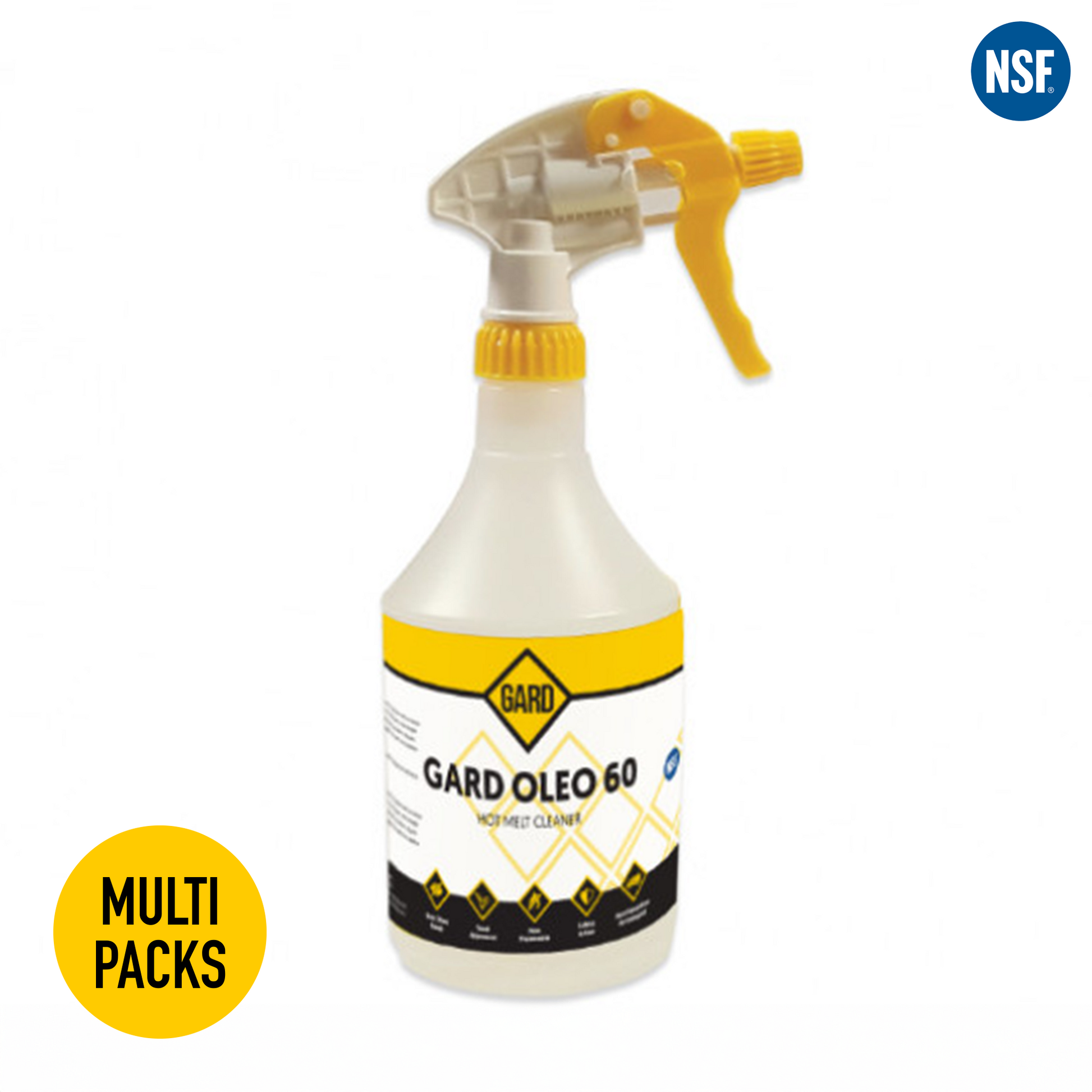 Gard Oleo 60 can be used to clean down label stations, guide rails, applicator wheels, label carriages, label brushes, belts, tank externals and machine guards without causing any damage to plastic i.e. crazing/clouding.