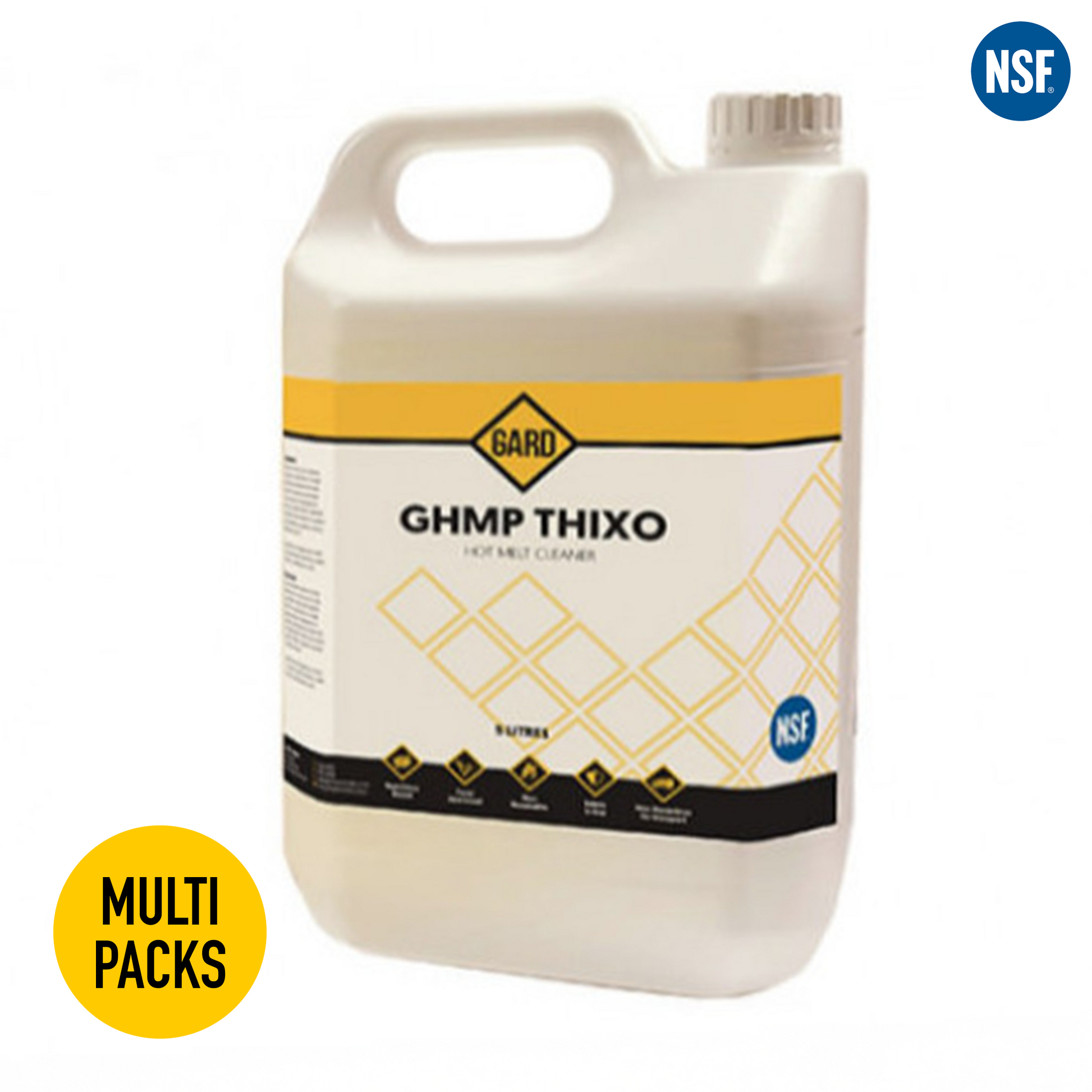 GHMP Thixo is used in pre emptied hot melt systems / equipment and typically where end users are operating via a vertical pump / hose system where the glue roller / return hose needs to be cleaned along with the glue tank / reservoir.