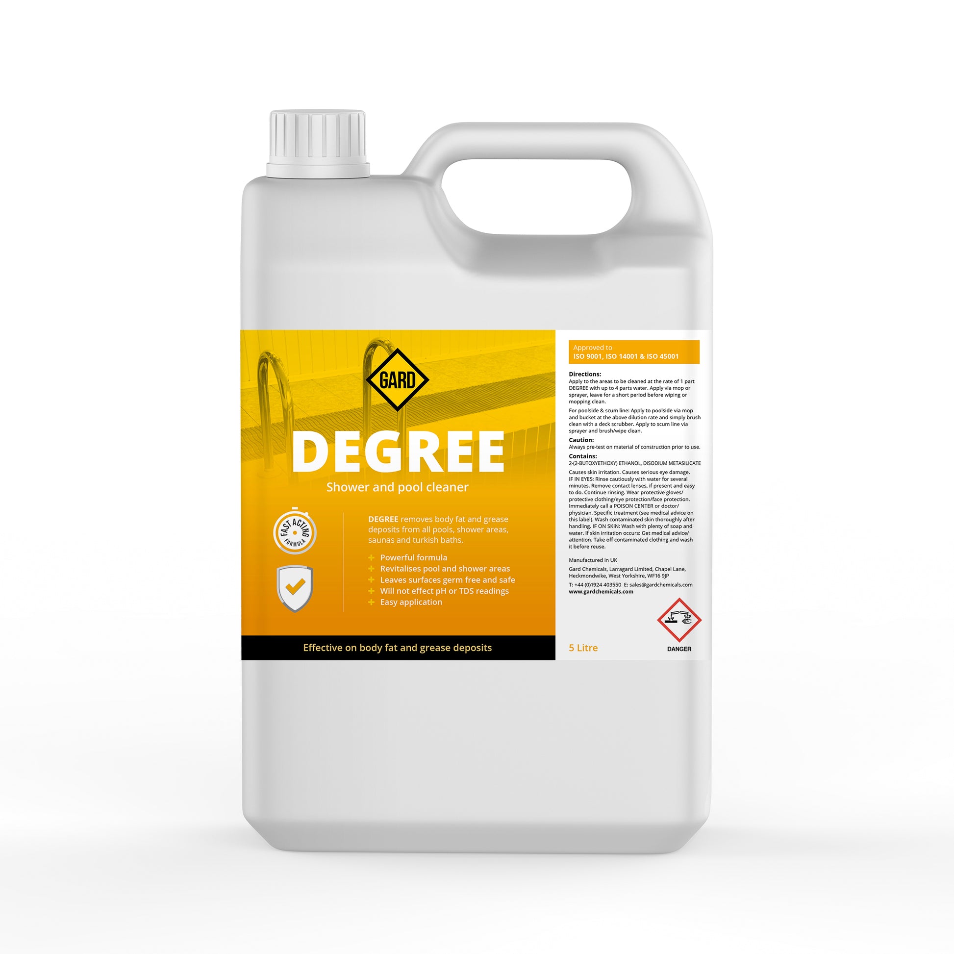 Degree removes body fat, grease and soap contamination from floors, walls, benches and many other areas commonly found in sports centres, fitness and leisure clubs, gymnasiums, swimming pools, saunas, spas and hotels.