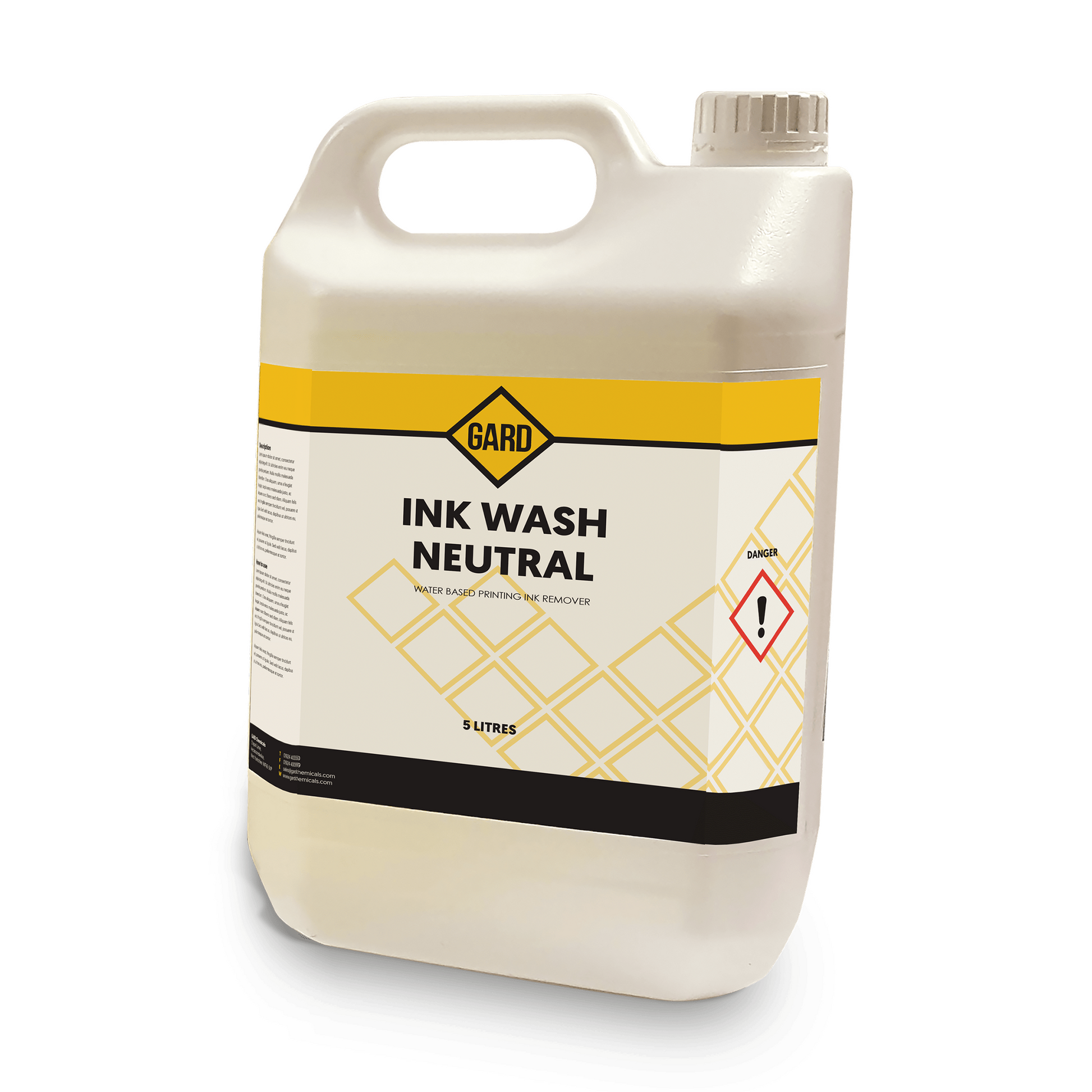 Ink Wash Neutral immediately penetrates and dissolves all water-based inks leaving machinery, equipment and surfaces free of all excess inks.